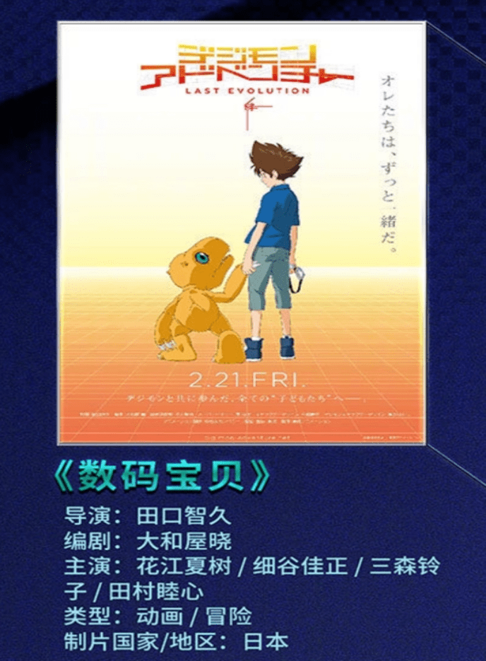 1日仍然正在日本上映了《数码珍宝》2月2,湾上线年度片单里近期也正在香港和台,》赫然正在列《数码珍宝童年回忆杀!成年太一的冒险旅。内陆上映希望正在!